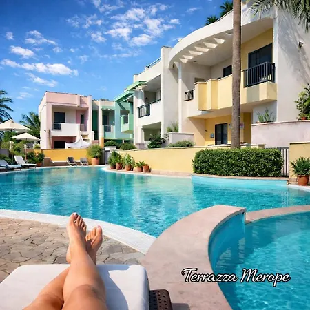 Il Terrazza Merope si trova a Torre dell'Orso, a 1 km dai Giardini del Sole, e vanta un solarium e una piscina all'aperto. Quest'appartamento dispone di una piscina esterna stagionale e una terrazza con vista sulla piscina.